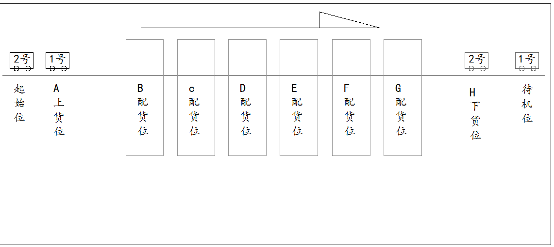 1.在起始a工位時,一號小車裝貨,確定裝好移到b工位配貨,確定一號小車到b工位后二號小車移到a工位裝貨,以些類推,當前工位有小車時,禁止后小車移動.