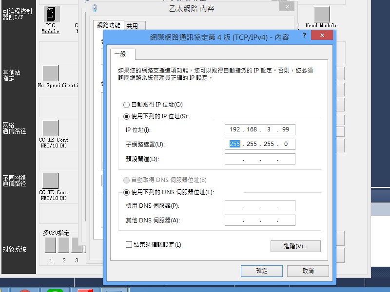 乙太網 :IP 192.168.3.99