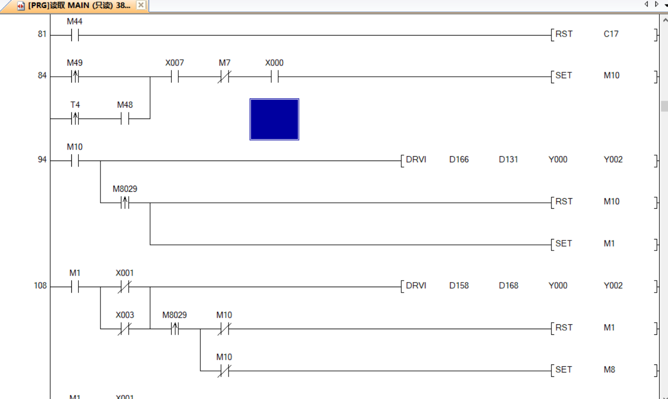 三菱PLC中有很多指令可以達到控制行程距離的方法,比如用PLSY、PLSR、DRVI、DRVA等指令都可以達到控制行程距離目的,因為最近在防別人的設(shè)備做了一臺機器,(除了程序不一樣外)機器結(jié)構(gòu)做的是一模一樣的,配件都是一模一樣的,三菱的FX1S的PLC,基恩士的感應(yīng)器、松下的伺服控制電機,可是來來去去改了好多程序,指令也來回的試換過寫,可是行程的精度就是達不到要求,別人的設(shè)備精度都能控制在0.5mm以內(nèi),而我自己的卻只能達到1.5mm以內(nèi),差異還是蠻大的。各位大神們平時在寫類似的程序時,都是用什么方法編寫的,有沒有什么好的建議或案例分享一下,學(xué)習學(xué)習,謝謝!