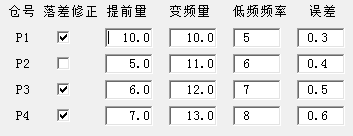 2016-6-16補充:已上傳A系列判斷程序。難度大一點的,如上圖,假設(shè)P1~P4落差修正位對應(yīng)M0~M3,則如果勾選P1 P3 P4,而P2不勾選,則后面諸如提前量(落差),變頻量,誤差等根據(jù)勾選項進行修正,P2的各項參數(shù)不修正(根據(jù)設(shè)定值運作),程序各個量選用變址編程,假設(shè)變址Z=2表示P3的各項要修正。設(shè)想M2勾選,即ON,程序運作到Z=2時,寫一程序判斷M0~M3中的M2為ON,并根據(jù)M2為ON修正P3倉里各項參數(shù)