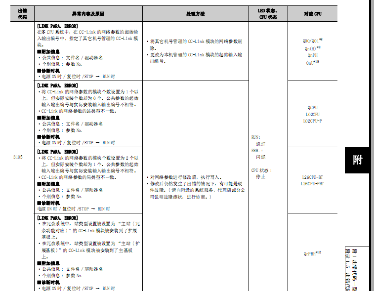 當(dāng)我打開(kāi)PLC是 Q系的的CPU ERR不停的閃爍。 我查錯(cuò)誤代碼為3105。也看了用戶(hù)手冊(cè),小弟我還是解決不了。往大神幫幫忙。(不知遠(yuǎn)程設(shè)備站是否需要設(shè)置)