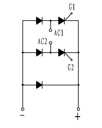 用數(shù)字萬用表二極管檔測量AC1、AC2不通,交換也不通,測量+,-正向是0.5V左右,反向無窮大。但我看網(wǎng)上圖紙,+,-端實際是一個二極管串聯(lián)一個單相可控硅與另外一組并聯(lián)(也是二極管串聯(lián)單相可控管),因為有可控硅串聯(lián),沒有觸發(fā)G腳,應(yīng)該不導(dǎo)通呀,也就是不應(yīng)該有0.5V偏壓呀