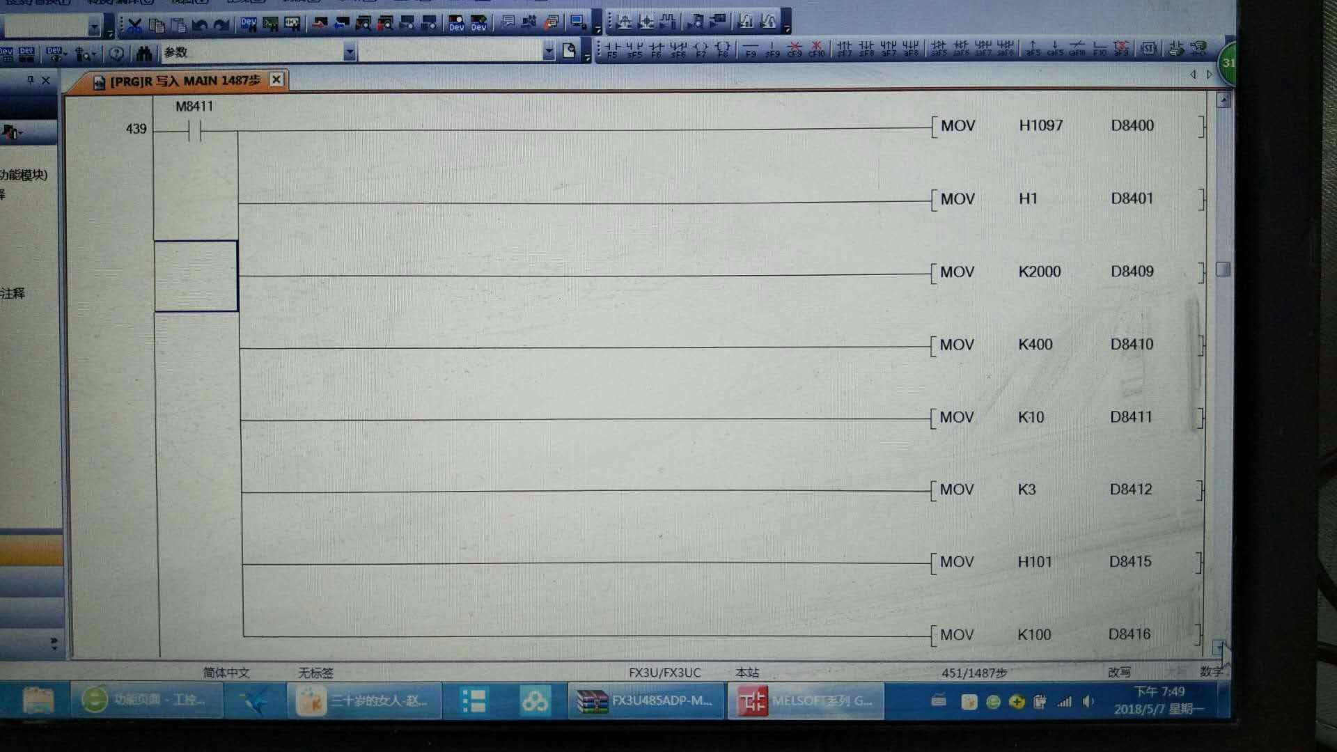 前一陣子寫的,搭配2臺(tái)臺(tái)達(dá)變頻器,5臺(tái)溫控器給你參考一下,用GX-Developer寫的,下完通知一下,我要?jiǎng)h檔