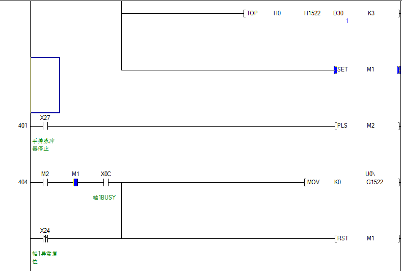 QD75D4定位模塊,現在JOG  OK,定位 OK,   OPR  OK,就是照教程寫的手持脈沖器的程序不行,但是用智能模塊的定位測試中的手持脈沖器又可以運行,請教高人這是什么問題。