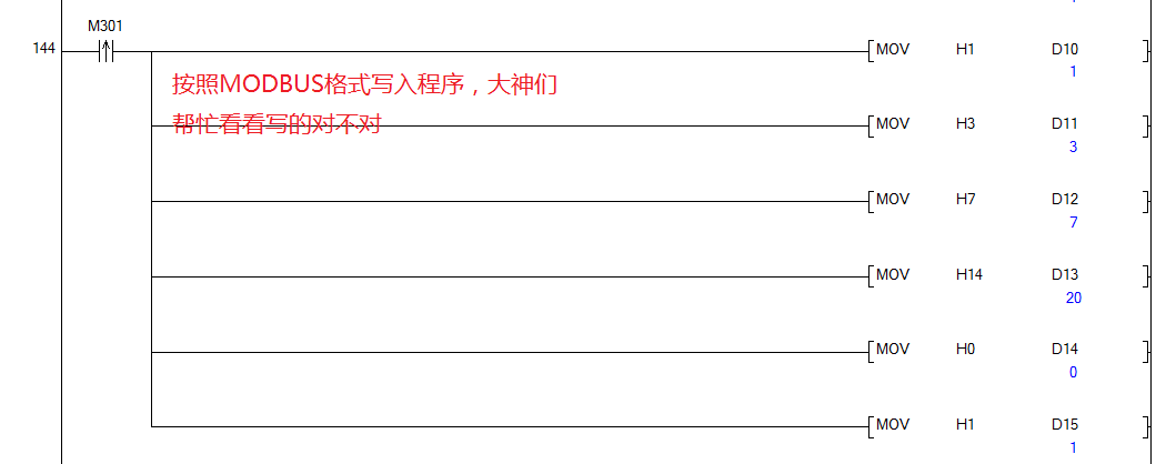 MODBUS地址要偏移,H07的地址,一般用的格式應該是00 06   或者 06,