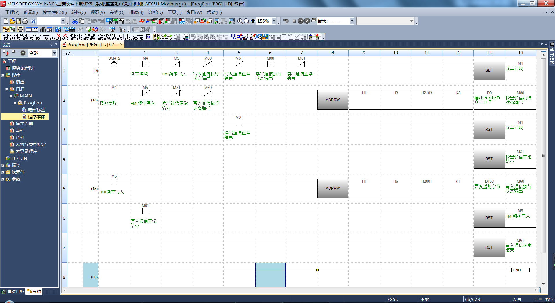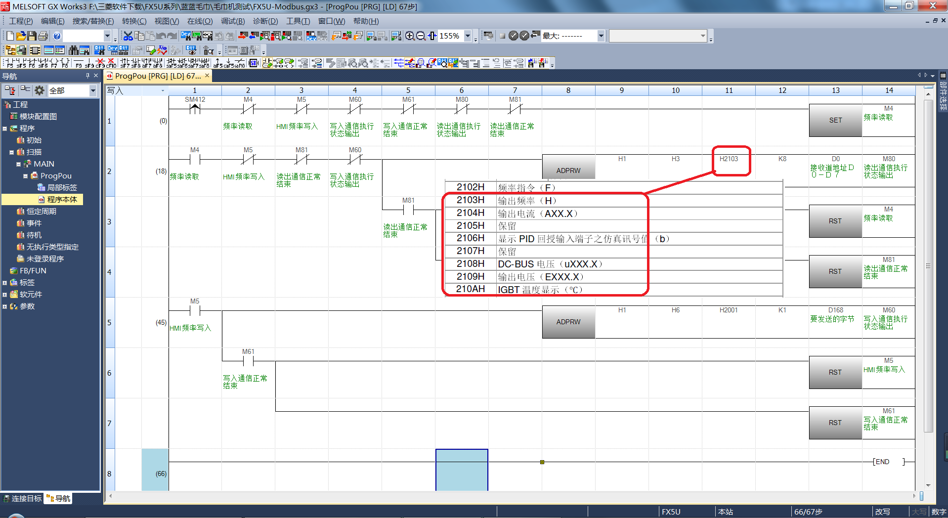 三菱FX5U-Modbus  通訊臺達變頻器,程序已經親自上機測試過了,寫的不好還請大家見諒,現在感覺三菱FX5U通訊真的很方便、、、