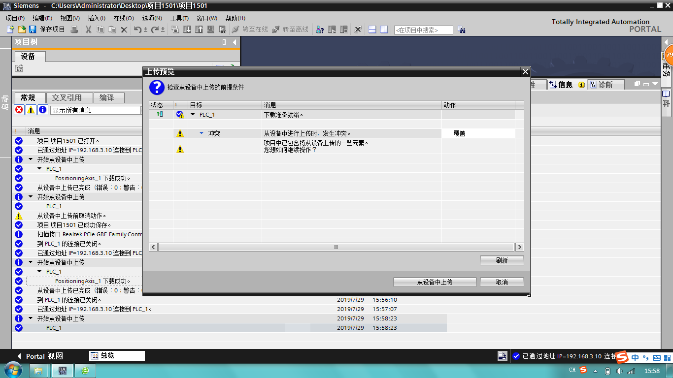 博途V15.1讀取程序,讀工藝對象的時候出現這樣的問題,讀取不出來,請問各位大神這個是什么意思,我是新建一個項目,選擇項目中使用的PLC型號,在項目樹中右鍵點擊上傳的,程序上傳沒有問題,但是工藝對象上傳時出現這種情況。