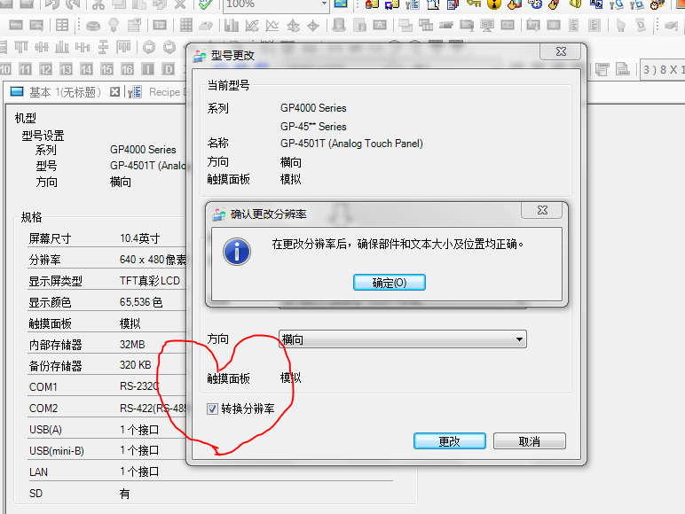 各位大神 普洛菲斯  故障觸摸屏 GP-4501  更換成GP-4601