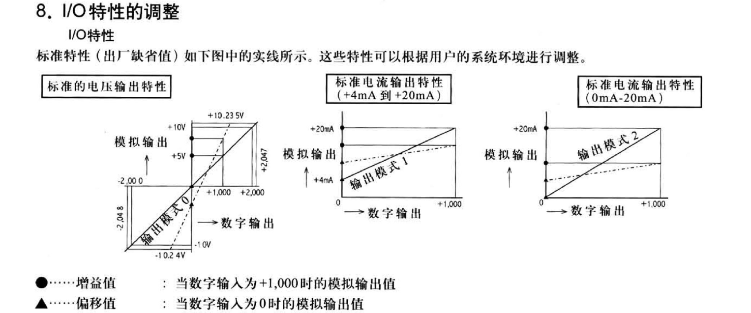 在FX2N-4DA中電流輸出模式下的數字輸出是不是最大只能是1000不能更改,增益值的調整是以數字1000時得輸出輸出電流,而偏移值是在數字0時的電流輸出?