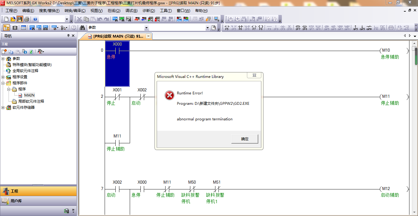 GX WORK2每次點保存都會顯示程序異常終止,請教前輩們這是怎么回事?