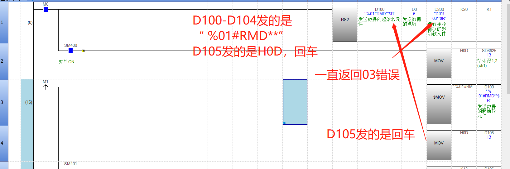 引用引用第1樓小侯于2020-11-24 11:49發表的 :應該是你點數設置有問題%01#RMD**(0D)應該是10個ASCII你設置6個而且照你的字串下去搬移.......