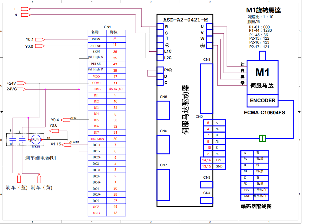 換了個驅動器A2-L的, 電機帶剎車的 使能 9 脈沖方向 接35 37 41 剎車45 11 30 1 26 大佬們看看對不對 |
