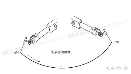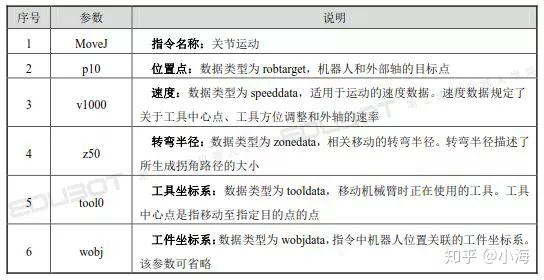機器人以最快捷的方式運動至目標點,其運動狀態不完全可控,但運動路徑保持唯一。MoveJ 指令常用于機器人在空間大范圍移動,如下圖所示。MoveJ 指令示例如下圖所示。