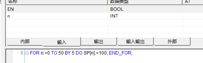 當迭代變量 n = 0 ~ 50 (以 5 遞增)和數組變量 SP[n] 被 100 替代時,執行迭代。