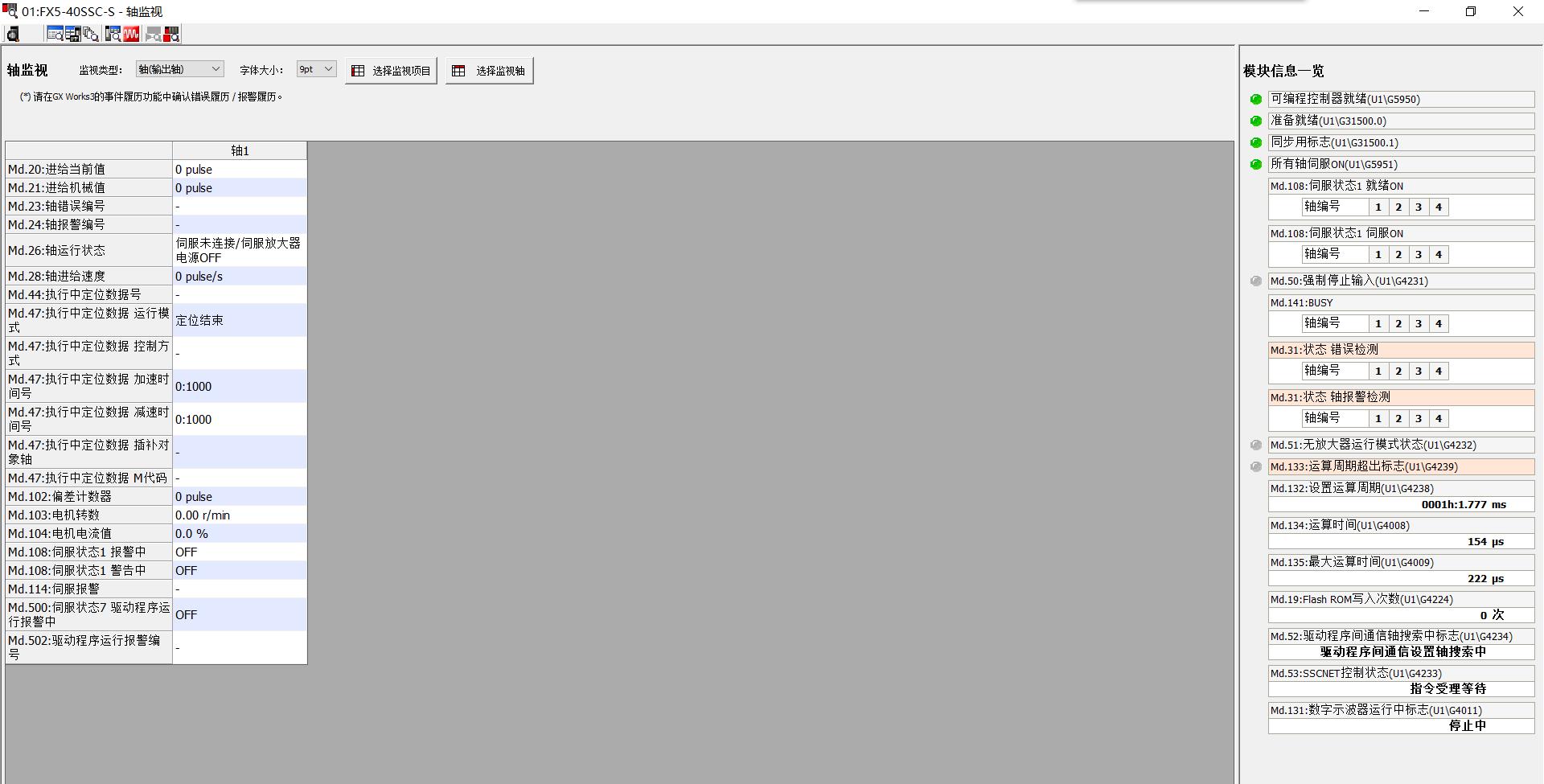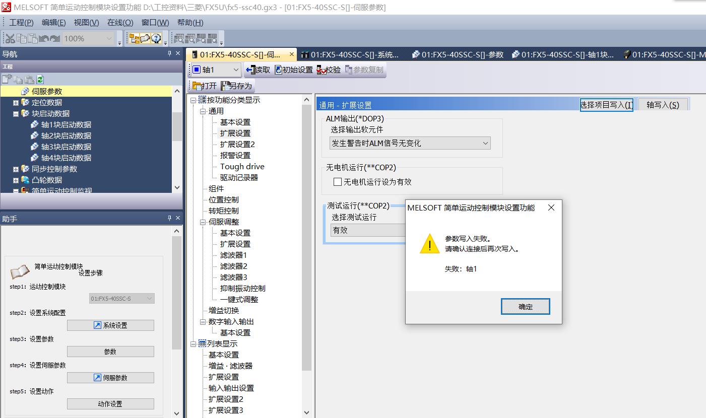 JE-B伺服和FX5-SSC模塊的問題請教,現在5U插了40ssc模塊,用SSCNET3光纖插在je-b的CN1,伺服撥碼是0,現在伺服就是無法和模塊連接上,翻了幾遍手冊就是沒看到解決原因和方法,打三菱400客服今天放假了》