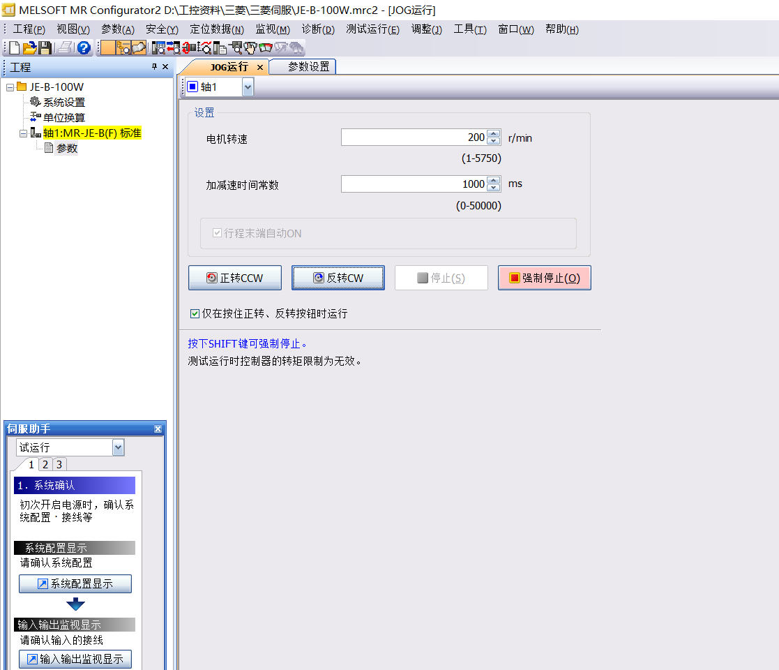 但是在伺服調試軟件可以寫入參數和jog
