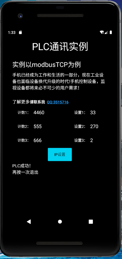 app是以modbusTCP為例,開發的安卓版的,蘋果的就算了,過路費太TMD的貴