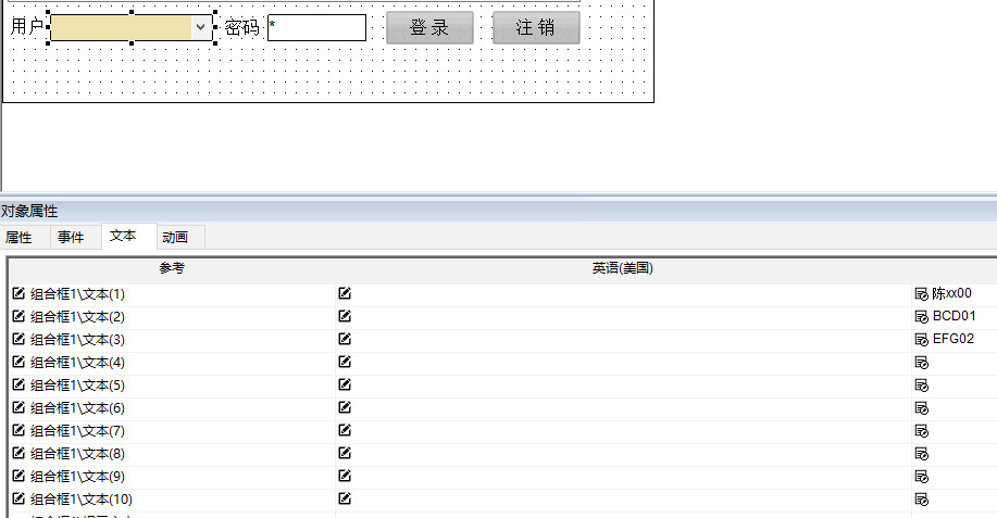 做出來(lái)的效果,就是在ComboBox的下拉列表中選中其中一個(gè)用戶名【陳xx00、BCD01、EFG02】,然后點(diǎn)擊登陸。前提是這些用戶必須已經(jīng)存在,且增加用戶時(shí),需要修改ComboBox的文本