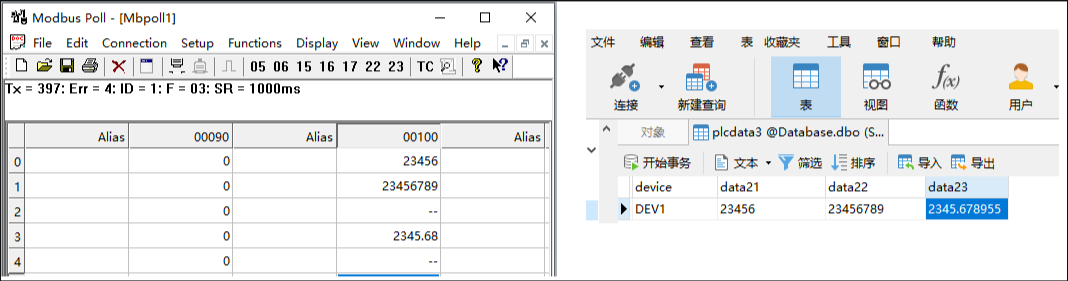 多臺(tái)PLC與數(shù)據(jù)庫(kù)之間的數(shù)據(jù)通訊的方案,既可以讀取PLC的數(shù)據(jù)上報(bào)到數(shù)據(jù)庫(kù),也可以從數(shù)據(jù)庫(kù)查詢(xún)數(shù)據(jù)后寫(xiě)入到PLC的寄存器,還可以將數(shù)據(jù)庫(kù)的數(shù)據(jù)轉(zhuǎn)為Modbus服務(wù)端/從站,實(shí)現(xiàn)數(shù)據(jù)庫(kù)內(nèi)的數(shù)據(jù)也可以走M(jìn)odbus協(xié)議通過(guò)網(wǎng)口或串口讀寫(xiě)。