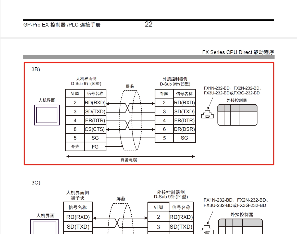 2就是觸摸屏選擇FX-485/232BD協議,而不是自帶的三菱圓口協議