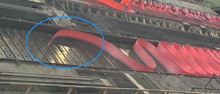帶鋼厚度1.2~6.5mm,寬度325~525mm,米重3.1kg~26.8kg,溫度大概400~600攝氏度。