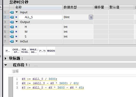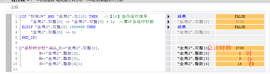 ![]() 1111MicrosoftInternetExplorer402DocumentNotSpecified7.8 磅Normal0 龍海兒11(同微博) 同《電氣外傳》微信公眾號 1111MicrosoftInternetExplorer402DocumentNotSpecified7.8 磅Normal0感謝粉絲網友的支持,也歡迎你們的討論和分享。昨天我們簡單討論了一下標準功能塊的重要性,僅僅是拿電機塊舉了一個例子,有粉絲問能否把電機運行時間做到塊里面,完善一下功能呢?那是絕對當然的100%可以的啊!!!本身這就是一個開放的非標的功能,各位根據需要搞一搞即可。那順著網友的意思,隨便寫了一個功能單獨演示一下。沒有集成到昨天的FB中,如果需要集成,只需要復制后面這部分即可,記得補齊FB的管腳哦。 它的原理非常簡單,用一個雙字類型數據來接收電機運行的累計總秒數。然后稍加運算把它拆分成時分秒顯示更直觀一些。最后注意加上自動清零或者人工清零運行時間,防止出現長時間的數據溢出錯誤。 還有啥更好的想法歡迎各位看官留言交流和分享。也虛心接受您的批評和指導。 |