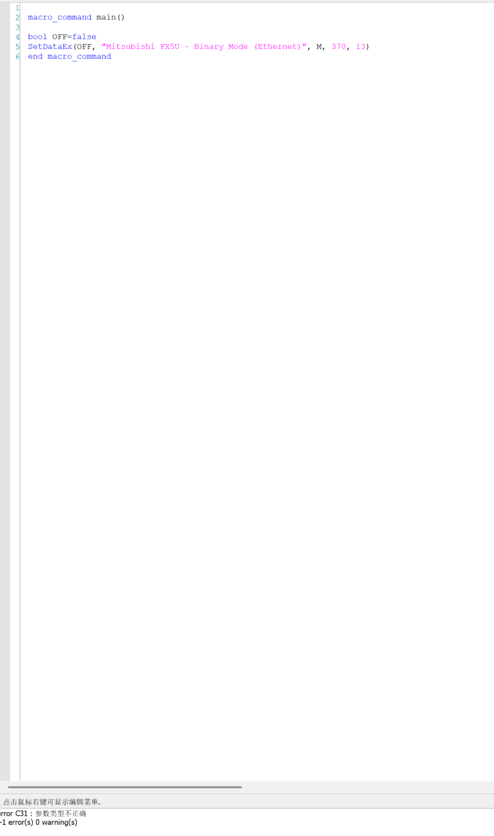 引用引用第6樓hlq_0815于2025-06-17 14:14發表的 :bool OFF[13]={false, false, false, false, false, false, false, false, false, false, false, false, false}SetDataEx(OFF[0], "Mitsubishi FX5U - Binary Mode (Ethernet)", M, 370, 13)