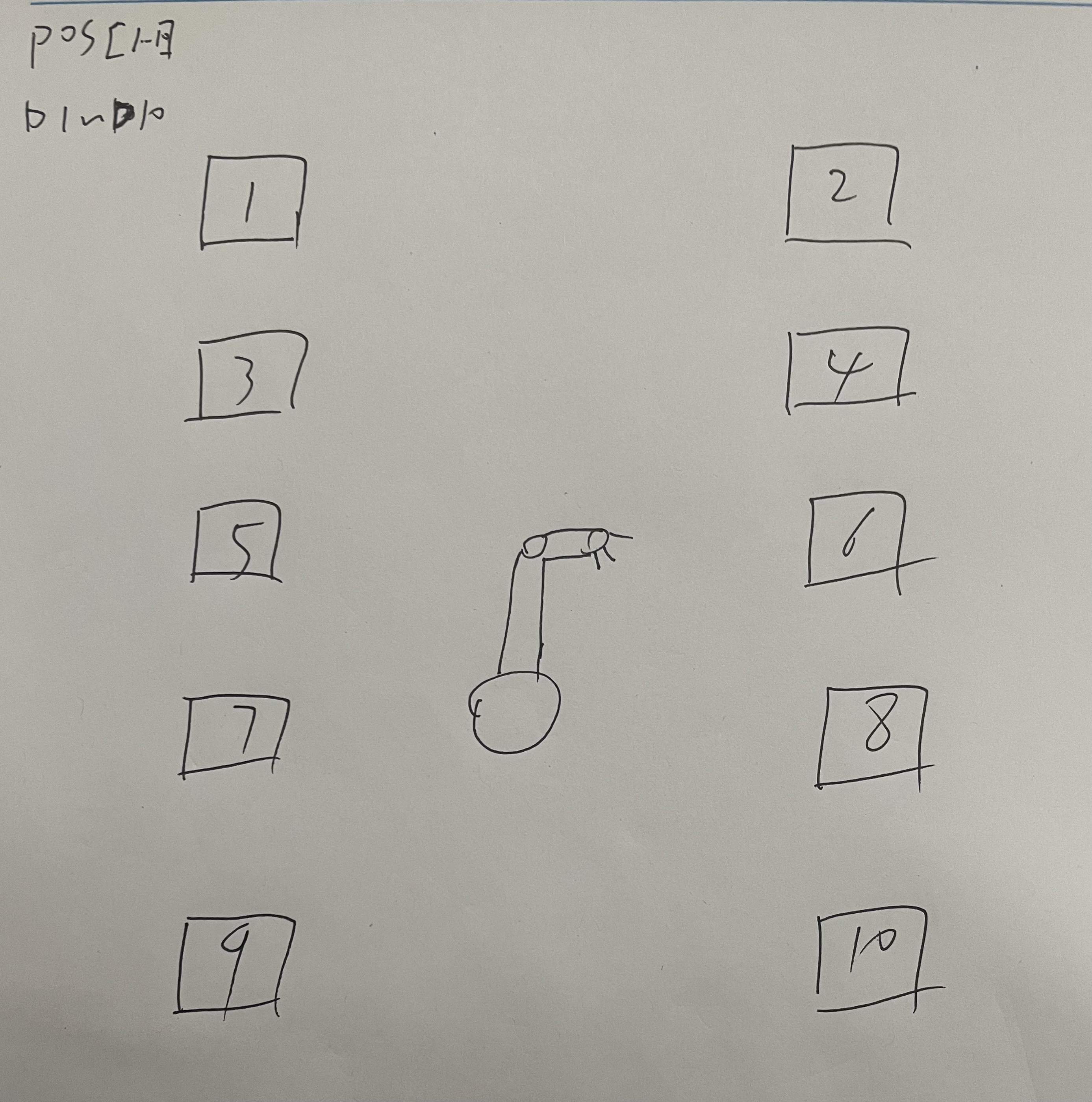 ![]() 圖片有點潦草 ![]() 大致需求是有10個罐體先后加工材料,材料加工完之后由中間的機器人抓取成品和供給未加工的產(chǎn)品。但是有一個優(yōu)先級的關系,假設機器人現(xiàn)在在抓取3號罐里的東西,這個時候5號罐先完成了,然后8號罐也完成了。我需要按照他們完成的先后順序來進行抓料和供給。 目前程序的思路是有的,我按照完成的順序分別把罐的編號傳到D1-D10里,先判斷D1-D10內(nèi)誰的數(shù)據(jù)不為0,再判斷對應數(shù)據(jù)內(nèi)的數(shù)值為多少,讓機器人去對應的罐子抓料。 列如D1=3;D2=5;D3=8;當3號罐抓料完成之后,把D1置0,然后再判斷D2不為0 ,讀取D2里的值為5,就去5號罐抓料。 可是這如果用梯形圖來寫太長了,想用ST去做一些判斷,不知道用哪個指令,本來想用FOR來判斷哪個D里面有數(shù)值不為零,但是只能比較一個D1,怎么實現(xiàn)D1=0之后判斷條件變成D2是不是等于0? ![]() |