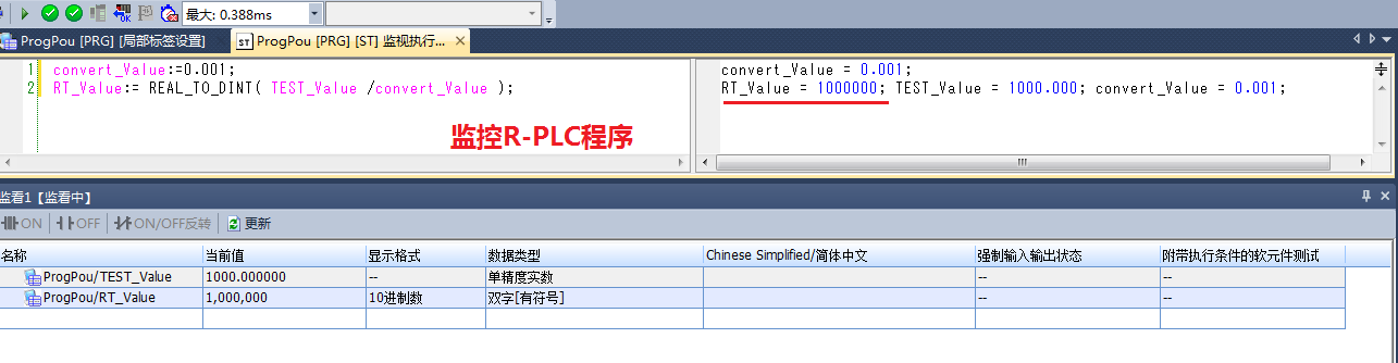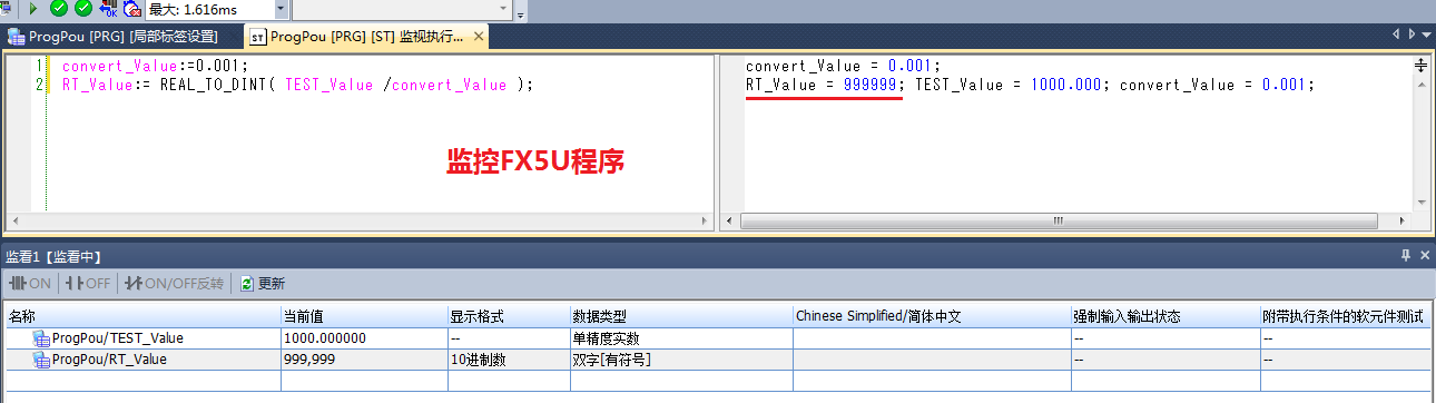 將R_PLC上的程序寫到FX5上測試結果發現得出的結果不一樣,傻眼啦 ![]() 在R_PLC和FX5_PLC中分別調用函數(REAL_TO_DINT)將浮點型轉換為雙整形,結果發現二種控制器的結果不一樣怎辦?這怎么解決 ![]() ![]() |