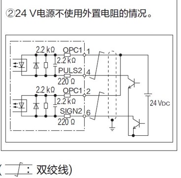 松下的伺服好像還要外接2.2K電阻吧,我記得。只有三菱的可以直接接DC24V.(因為伺服放大器都是5V的)
