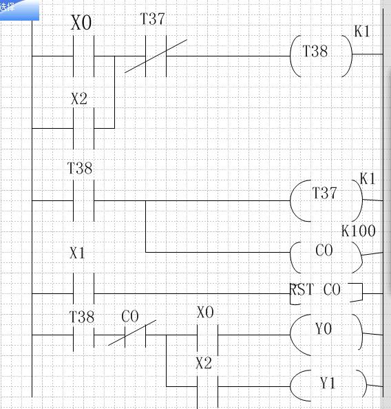 小弟我剛學plc,看了個題目,自己做出來的答案和資料給的答案不同,請大家幫我分析一下,謝 題目:汽車轉向燈開關有三個檔位,裝有一個單刀三擲開關,開關扳向左邊時左燈閃亮,扳向右邊時右燈閃亮,經過中間位置時關燈。現要求開關撥向左側時,左燈開始閃亮,亮滅閃爍間隔0.2秒;開關撥向右側時,右燈開始閃亮,亮滅閃爍間隔0.2秒;若司機忘記關燈(即扳回中間位置),則20秒后應自動關燈。 (1)左、中、右開關分別從X0、X1、X2輸入,畫出電路接線圖。 (2)用Y0、Y2控制左右燈,設計控制程序梯形圖 第一張圖是標準答案 我主要有兩個問題: 1、為什么用計數器C0,題目要求20秒后自動關燈,還應該是計數器啊? 2、我分析圖中是0.1秒閃亮啊,假設閉合X0,T38通電,延時0.1秒后燈亮,T37通電延時開始,0.1秒后T37動斷觸點斷開,T38斷電,燈滅,隨即,t38又通電循環 第二張圖是我自己設計的,請指教下對不對,有什么要改進的,不甚感激 (在綜合區沒人理,希望各位學三菱的大哥幫個忙) |