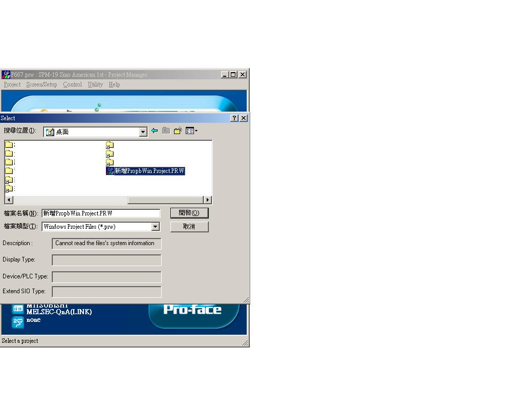 我的本意是打開現有的觸摸屏程序(比如在本站下載的程序),下載后我放在桌面,啟動觸摸屏編輯軟件,就是如圖的對話框,點打開后找到下載的例程位置,找到目標后點打開,軟件沒有反映