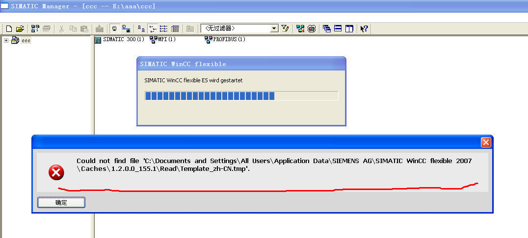 在STEP7中插入 wincc flexible (2007版)項目,或在wincc flexible (2007版)創建新項目時出現錯誤提示。