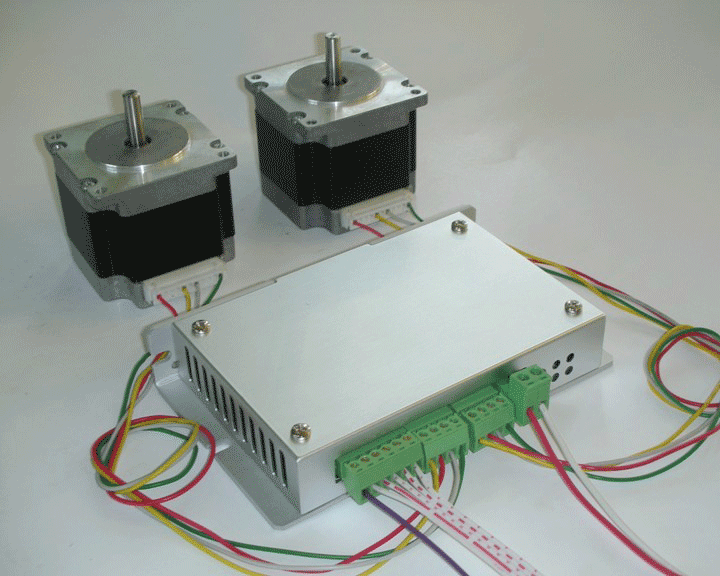 此款雙軸步進電機驅(qū)動器適于同時驅(qū)動兩臺42步進電機,單臺電機運轉(zhuǎn)電流為0.5A-1.5A,最大16細分,可輸入交流或直流電源(AC10-20V或DC12-30V)。