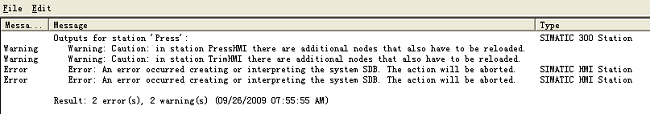 “Warning: Caution: in station TrimHMI there are additional nodes that also have to be reloaded.”