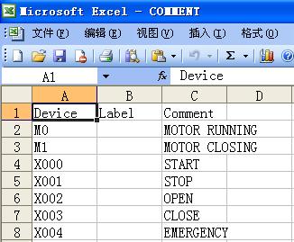 STEP2,新建一個名稱為“comments”的記事本文檔備用,可以在該文件內輸入軟元件及其注釋(在使用記事本編輯程序或注釋時注意將元件和注釋等用空格分開,分得越開越好)