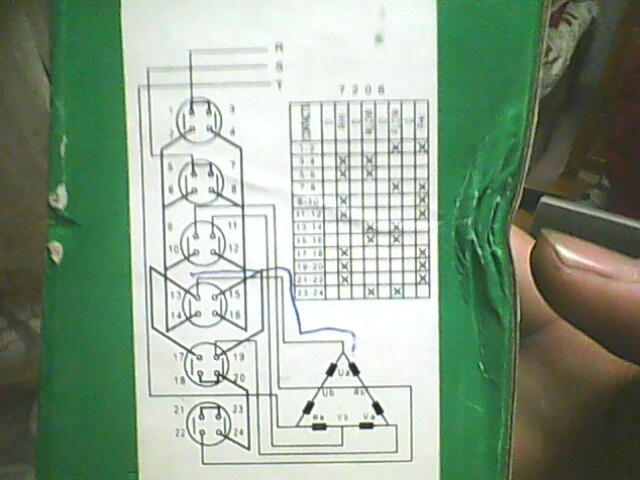 我幫朋友更換一臺銑床的三相電源T-16EXF64D-6組合開關。這個開關有正反轉檔位;正慢速和反慢速檔。主電源R.S.T   分別接R-1 S-5   T -Wa 。 其他的6條正反電機線不知道怎么接了? 如上圖:求助工控家園的朋友多多指教!謝謝