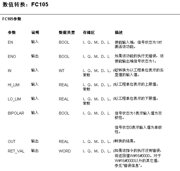 其實是沒有這個語句的,是調用系統子程序FC105后出現的。它的作用是數值轉換: